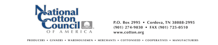Lauren Krogman at the NCC at 901.274.9030 or lkrogman@cotton.org.